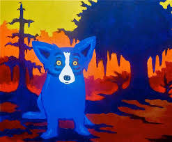 Today we are featuring artist George Rodrigue. Born and raised in New Iberia, Louisiana, artist George Rodrigue (1944 – 2013) is best known for his Blue Dog paintings, which catapulted him to worldwide fame in the early 1990s.