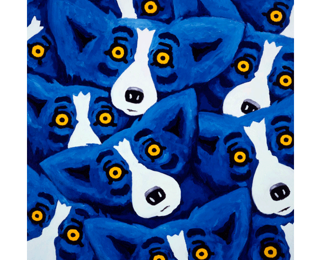 | “The yellow eyes are really the soul of the dog. He has this piercing stare. People say the dog keeps talking to them with the eyes, always saying something different. People who have seen a Blue Dog painting always remember it. They are really about life, about mankind searching for answers. The dog never changes position. He just stares at you. And you’re looking at him, looking for some answers, ‘Why are we here?,’ and he’s just looking back at you, wondering the same. The dog doesn’t know. You can see this longing in his eyes, this longing for love, answers.” |