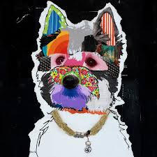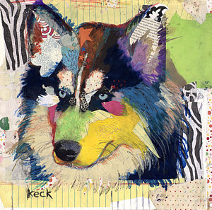 Today I want to share some more dog art with you. Artist Michel Keck has been a full time professional artist since 2003. Her original works are in private & corporate collections in over 30 countries around the world. Her work has even appeared in Hollywood movies. Among her works are some interesting abstract, multi-media dog portraits.