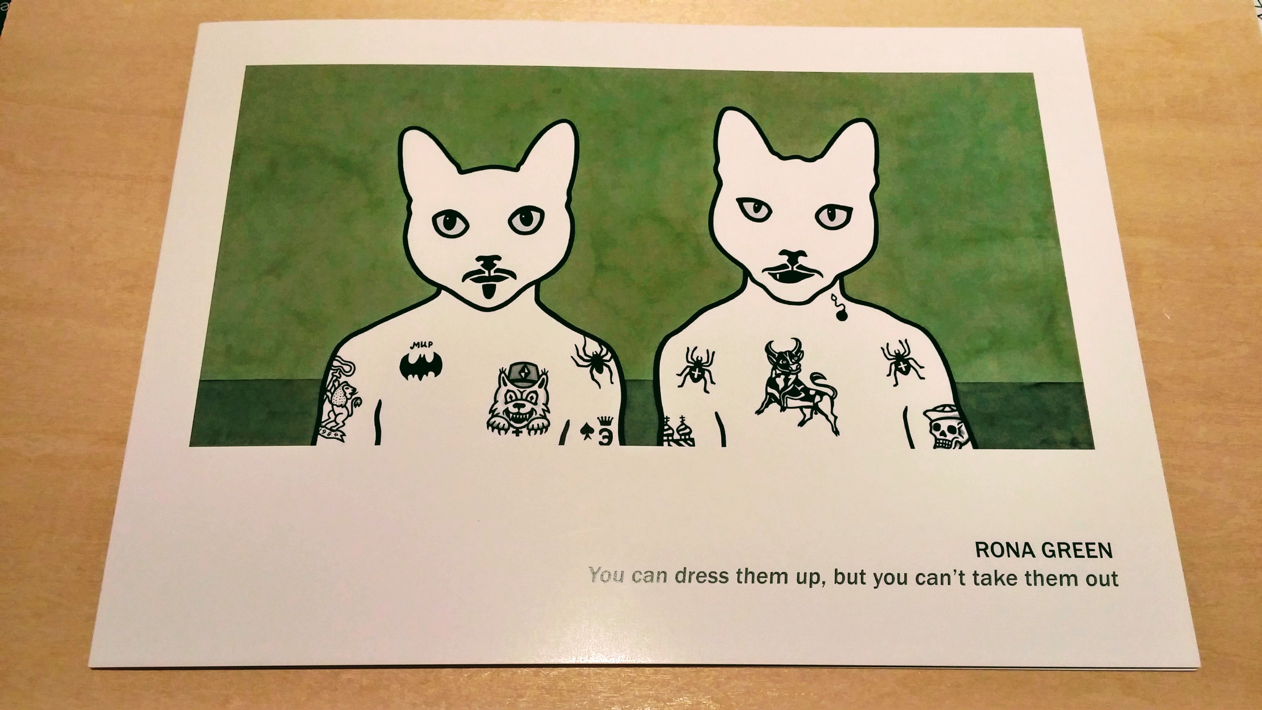 My huMom got a surprise in the mail. She has always really liked the work of artist Rona Green & had some of her work. Sadly, we lost it in the house fire back in April. Rona had heard of the fire & kindly sent us a beautiful print. 3 bum swings & 3 more.
