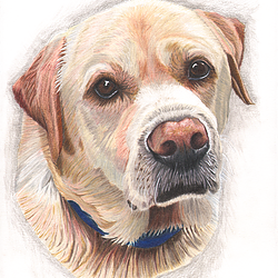 Today we are looking at the art work of Cathy Settle. Her animal portraits are wooftastic. The medium Cathy prefers for her artwork is colored pencils. She uses various types of paper & sometimes uses suede mat board.