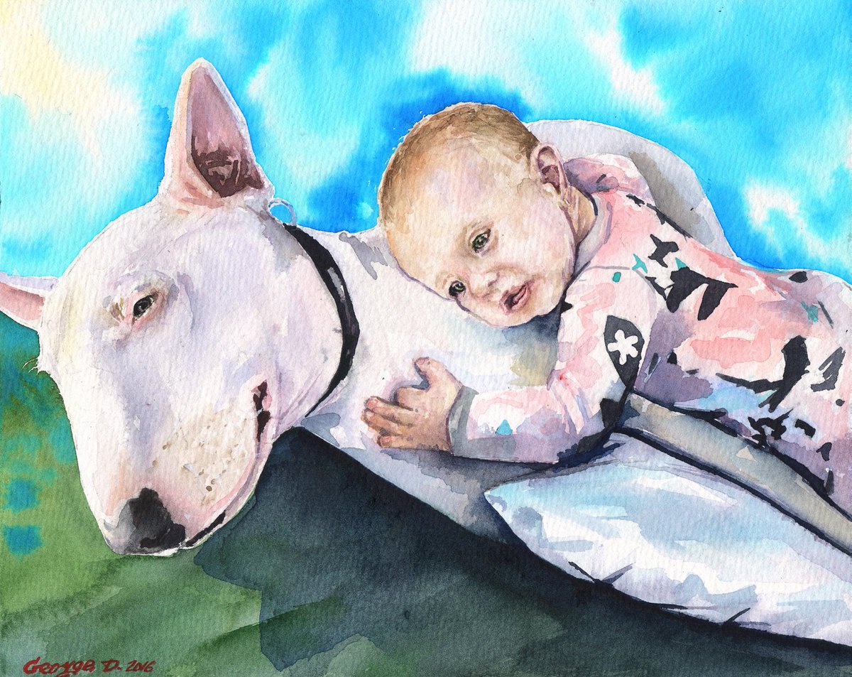 Working with water color & oil paint, his paintings are vibrant & his art just makes you smile. Let’s have a look at his dog portraits.