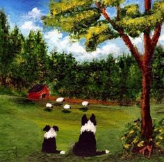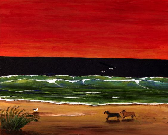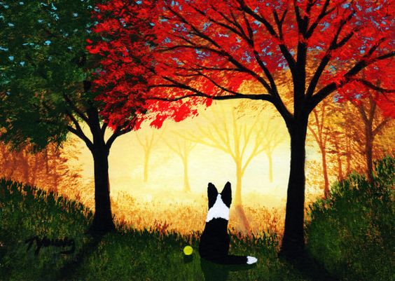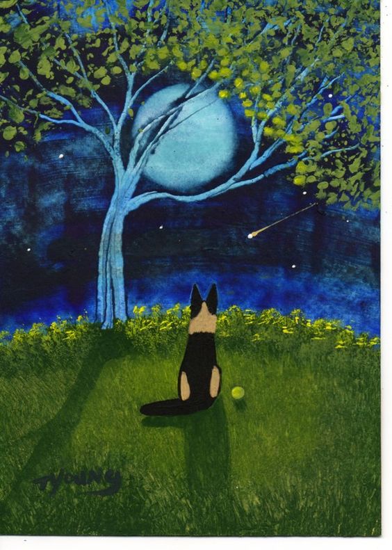 Today I’m sharing some paintings of artist Todd Young. He is a self taught artist who lives in Indiana, U.S.A. His artwork has sold worldwide. Todd has several paintings with dogs which I think are pawsome. These rich yet simplistic painting invites the viewer to explore  each good dog’s experience of adventure & tranquility. 3 bum swings! 3 more!