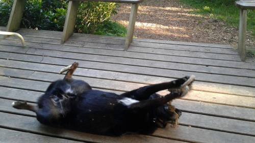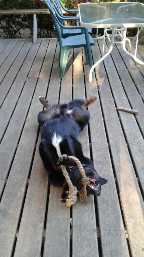 My huMom has a very good friend who lives out in British Columbia. Her name is Erin & she has a good dog named Django (the D is silent). I sent him a Mighty Chaw Chaw in the mail & word is, Django is very proud of his new toy. Erin was nice enough to send us pictures & since today is Wordless Wednesday, I’ll let them speak for themselves.