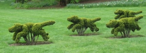 Hello everyone, CEO Olivia here. As you know, I’m fascinated by the endless creativity of you humans. I’m constantly sniffing about the inter-webs in search of new creative expressions that are dog related. Today I’m sharing with you some images of dog topiaries or in plain words, dog sculptures made from bushes.