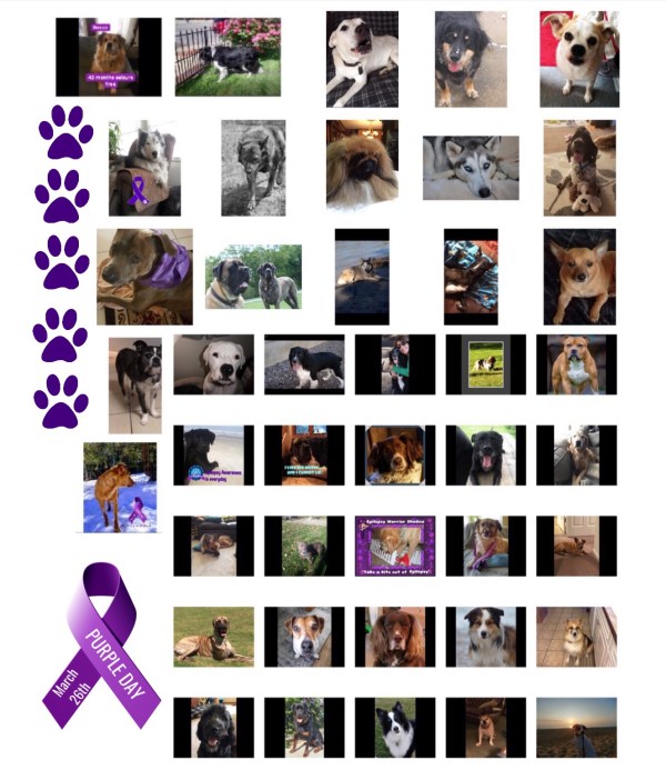 Hi everyone, CEO Olivia here. Once again this week for Wordless Wednesday we at Knotty Toys for good Dogs are paying tribute to Canine Epi-Warriors like myself. The pictures come from The Wally Foundation – Canine Epilepsy. Remember to #painttheworldpurple for #PURPLEDAY #canineepilepsyawareness