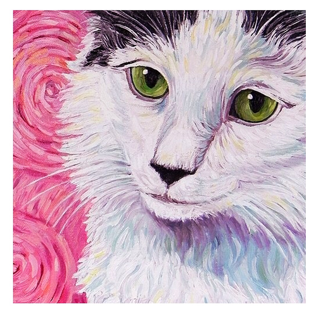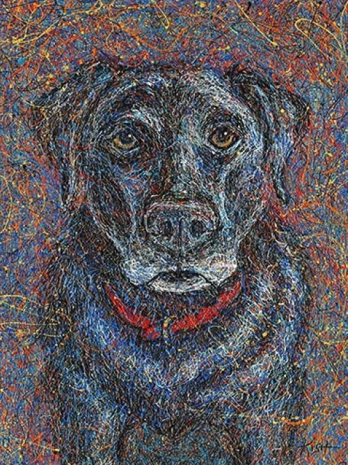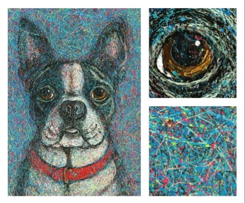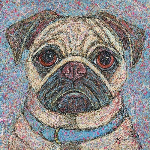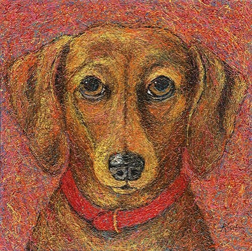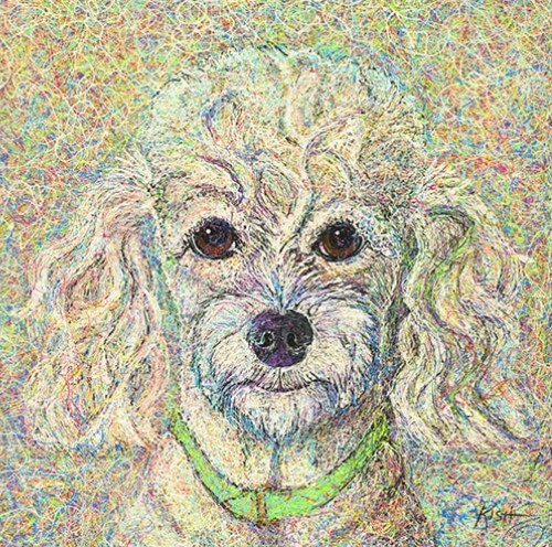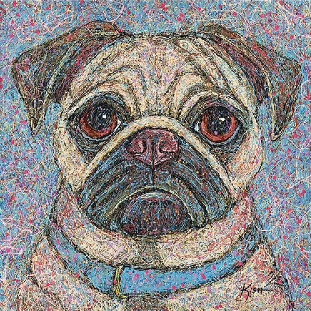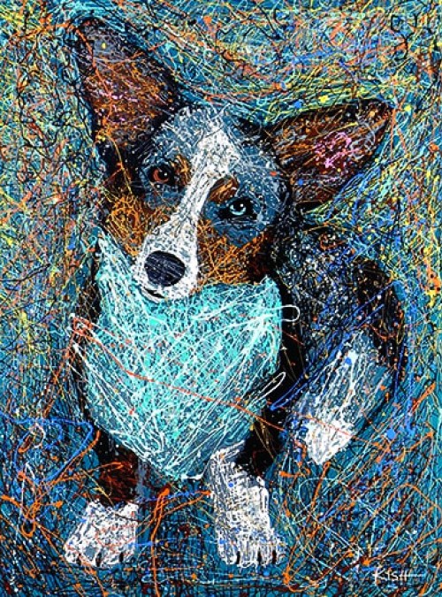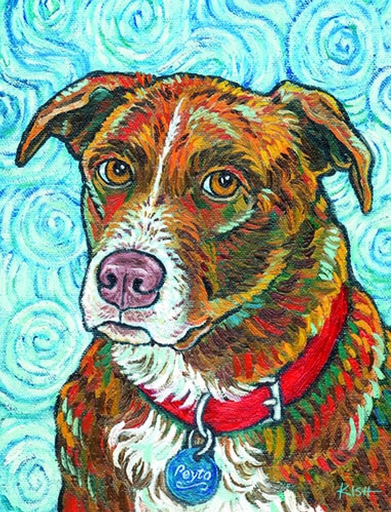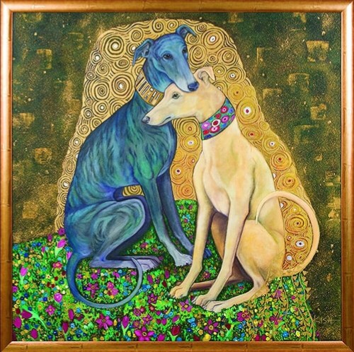 Hello everyone, CEO Olivia here. Today I’ve sniffed out some wooftastic paintings by artist Gretchen “KISH” Serrano. She is inspired by many artists & uses many techniques but I especially like her paintings done by dripping household paint (DRIP art) onto the canvas which she used to create her wagnificent ‘Paw Palettes’, an art collection that includes more than 100 breeds of good dogs & cool cats & over 250 works of art. HuMom is a Klimt fan so she loved seeing his influence in her wooftastic work. Have a look.