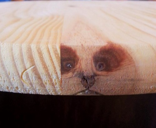 Hi everyone, CEO Olivia here. While sniffing out art works on the inter webs I somehow instead stumbled upon some bizarre photos of dog & cat faces appearing in wood knots. Or so it seems. These are true “knotty dogs & cats”. BOL!