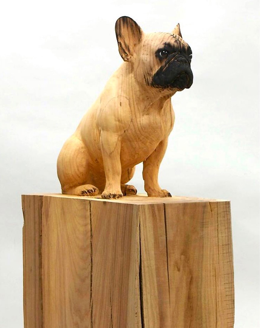 Hello everyone, CEO Olivia here, welcome to Friday. Spanish sculptor Gerard Mas sculpts the likenesses of good dogs & cool cats from tree trunks & alabaster stone. Using very minimal materials, Mas creates the signature folds & frowns of French Bulldogs, the sleek muzzles of English Bull Terriers & the inquisitive faces of Siamese cats. When called for Mas gives the animal dark “fur” which he achieves by charring the carved surface. His in-progress & completed sculptures can be sniffed out on Instagram.