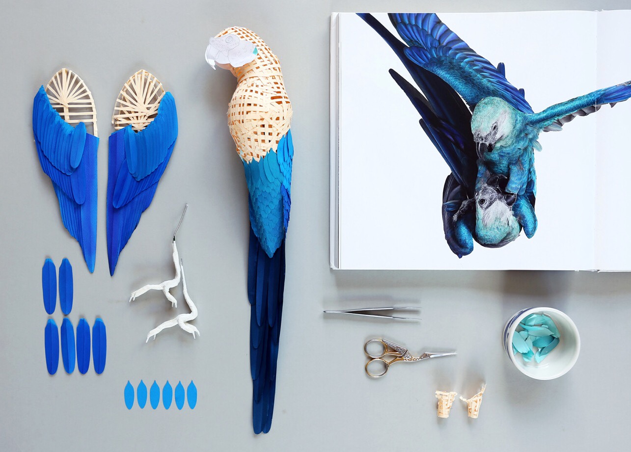 In 2012, Bristol-based artist Diana Beltrán Herrera began sculpting layered paper birds & other wildlife. Her lifelike pieces capture nature’s finely detailed & minuscule elements, like the fibrous texture of feathers or the veins running through leaves.