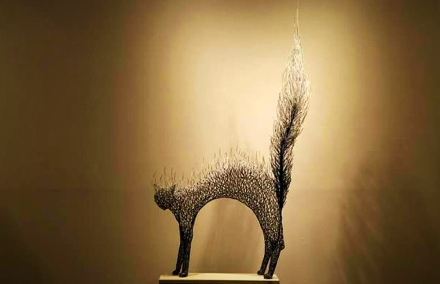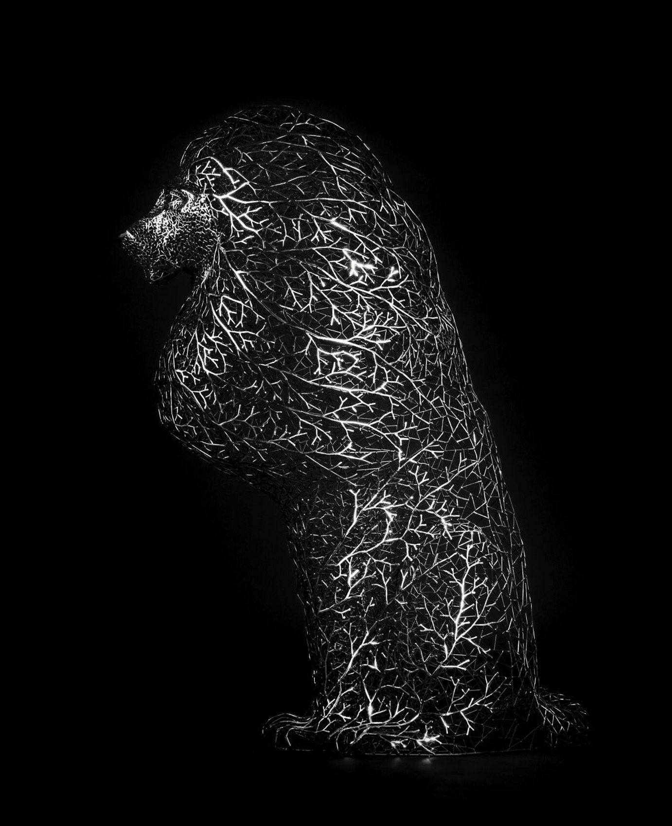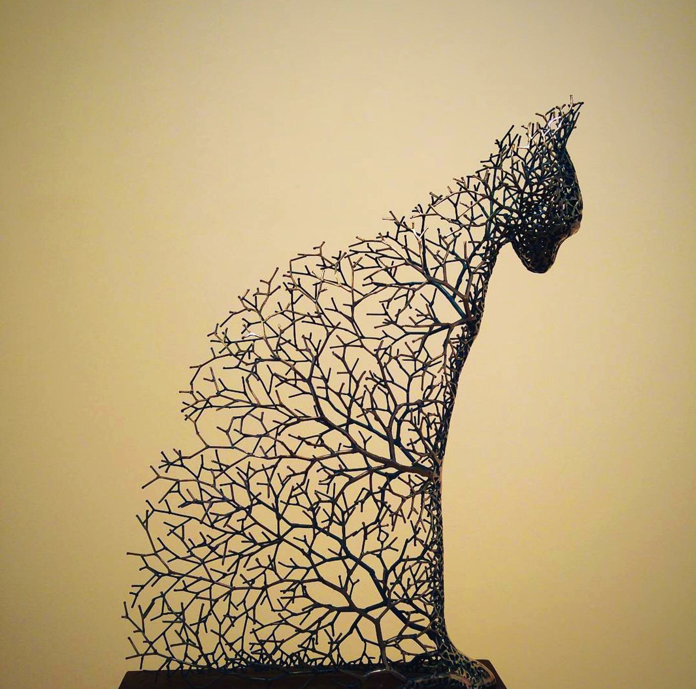 Welcome to Friday everyone, CEO Olivia reporting. Today I’ve sniffed out some pawsome looking sculptures by Korean sculptor Kang Dong Hyun. His technique involves constructing hollow sculptures from a system of metallic branches, giving his works the appearance of metallic shrubbery, portraying majestic animals such as lions, elephants, & horses.