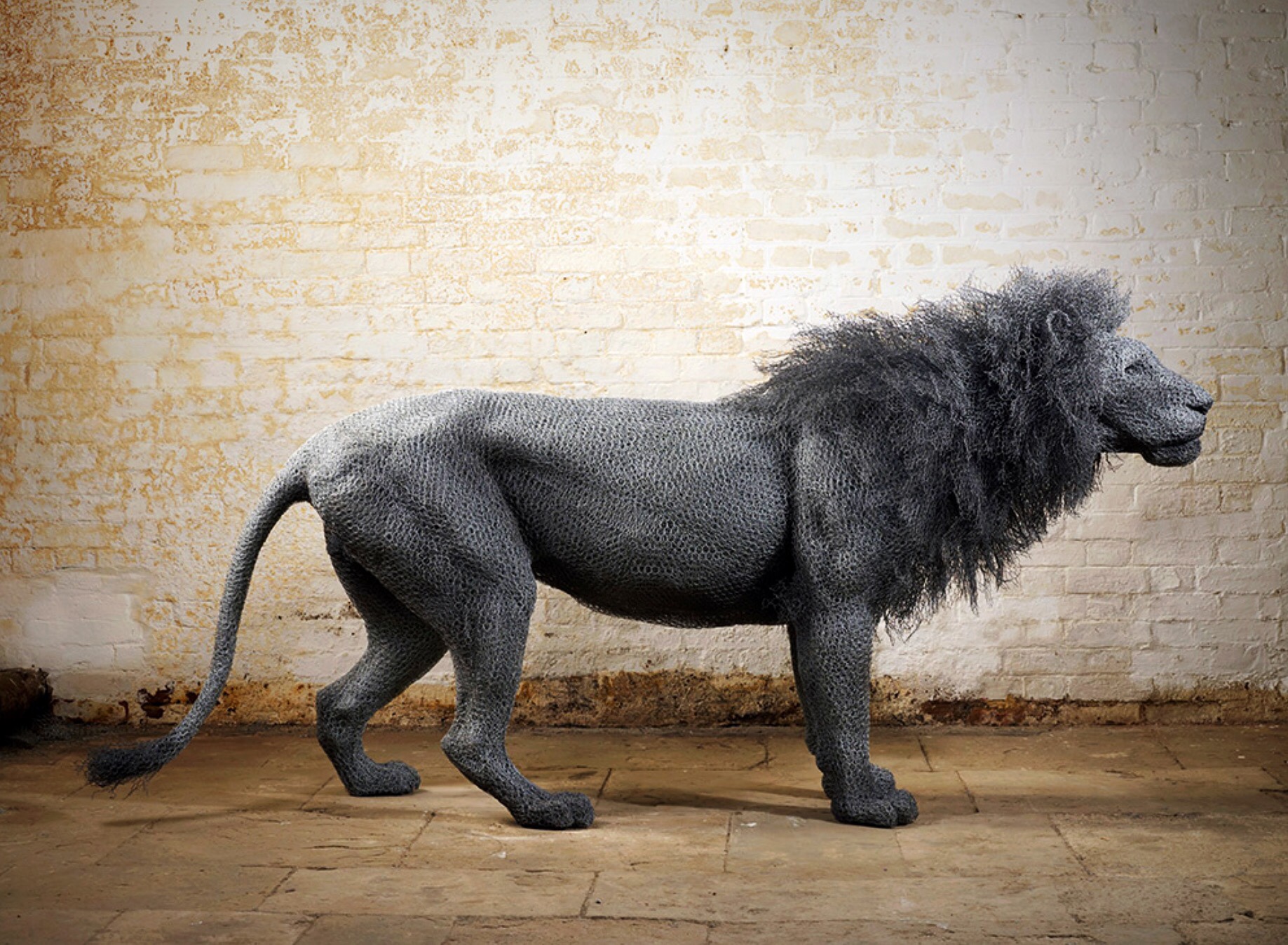 Kendra, a graduate of the Royal College of Art, says she is fascinated by how such a seemingly ordinary medium, chicken wire, is capable of suggesting “the sense of movement and life, of contour & volume, the contrasts of weight & lightness, of solidity & transparency—values that I find in my natural subjects.  What interests me most about studying animals is identifying the spirit & character of the individual creatures.  I try to create a sense of the living, breathing subject in a static 3D form, attempting to convey the emotional essence without indulging in the sentimental or anthropomorphic.”