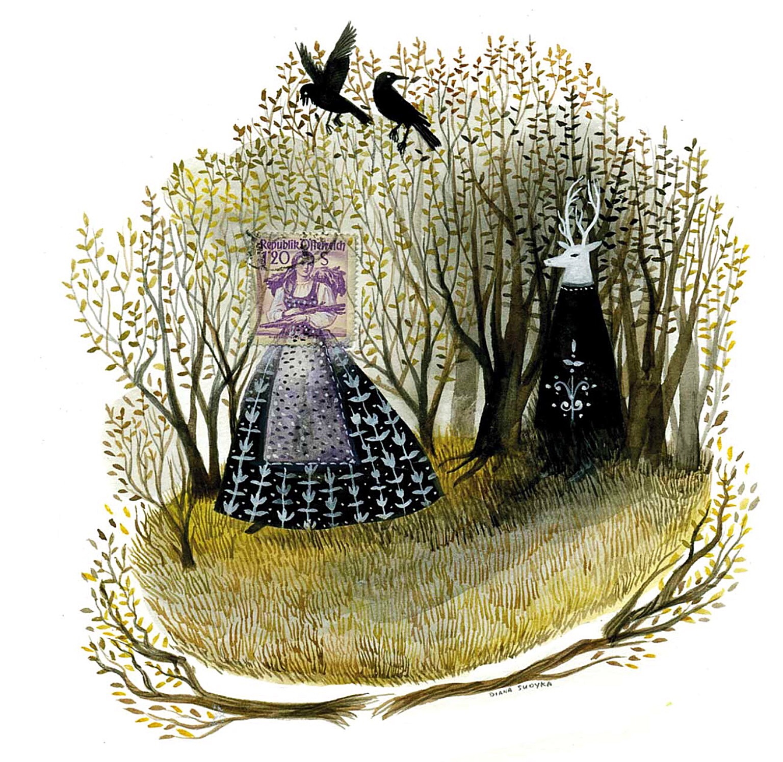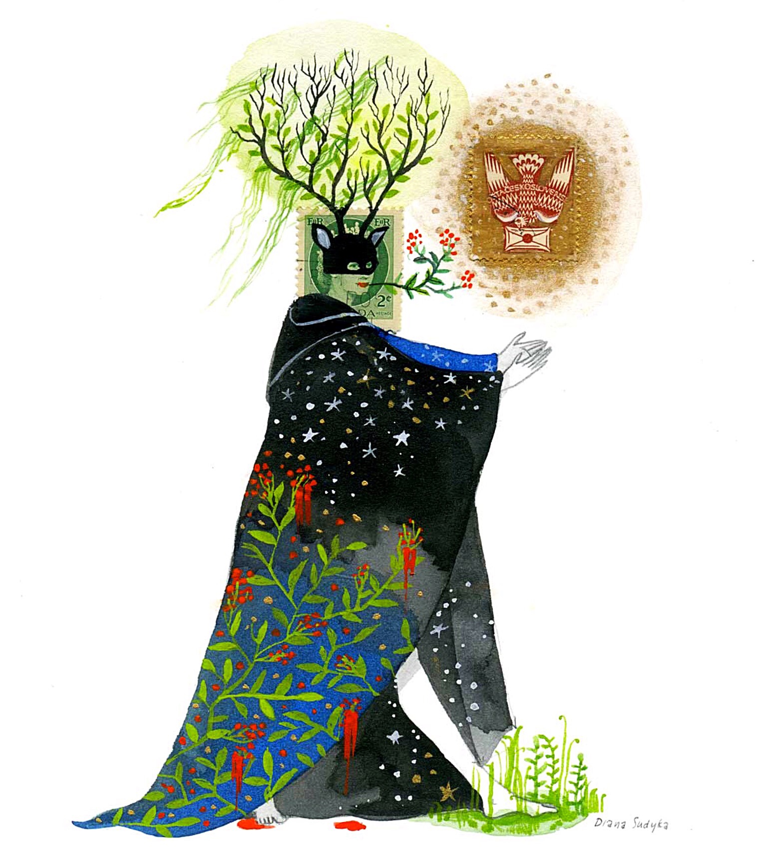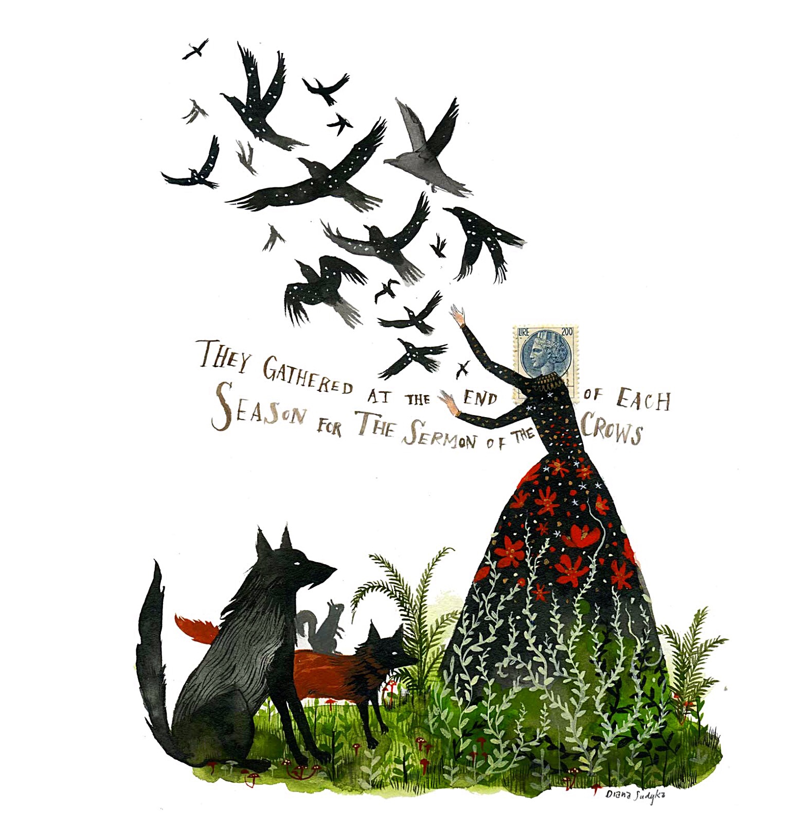 Chicago based illustrator Diana Sudyka has both her Bachelor of Fine Arts in printmaking & Master of Fine Arts. She worked as an intaglio printmaker for years at the Big Cat Press & would use the equipment for her own work after hours. Intaglio is the family of printing & printmaking techniques in which the image is carved into a surface & the carved line or sunken area holds the ink. It is the opposite of a relief print, where the parts of the impression that make the image stand above the main surface.