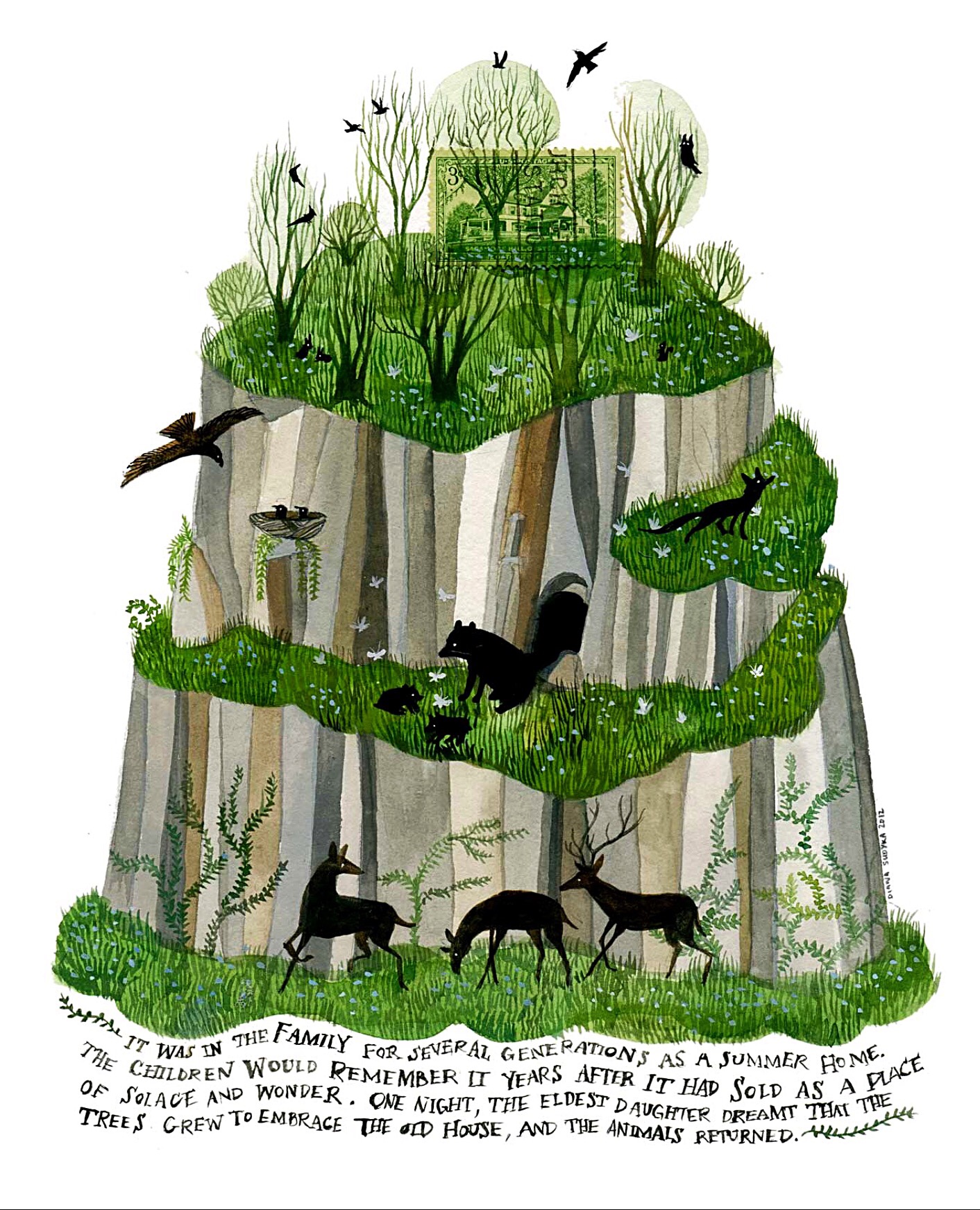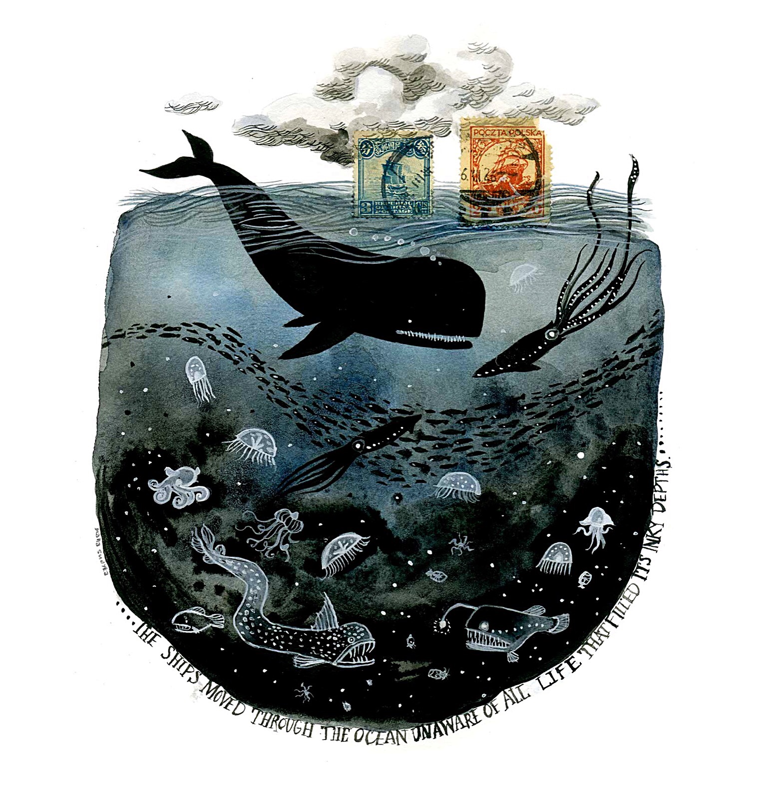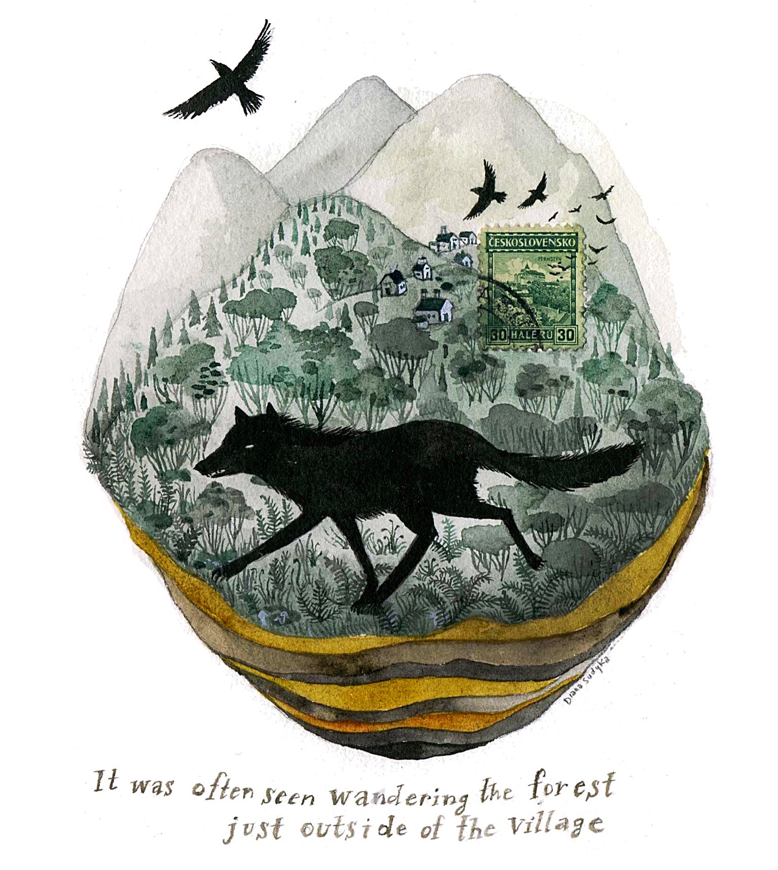 Chicago based illustrator Diana Sudyka has both her Bachelor of Fine Arts in printmaking & Master of Fine Arts. She worked as an intaglio printmaker for years at the Big Cat Press & would use the equipment for her own work after hours. Intaglio is the family of printing & printmaking techniques in which the image is carved into a surface & the carved line or sunken area holds the ink. It is the opposite of a relief print, where the parts of the impression that make the image stand above the main surface.