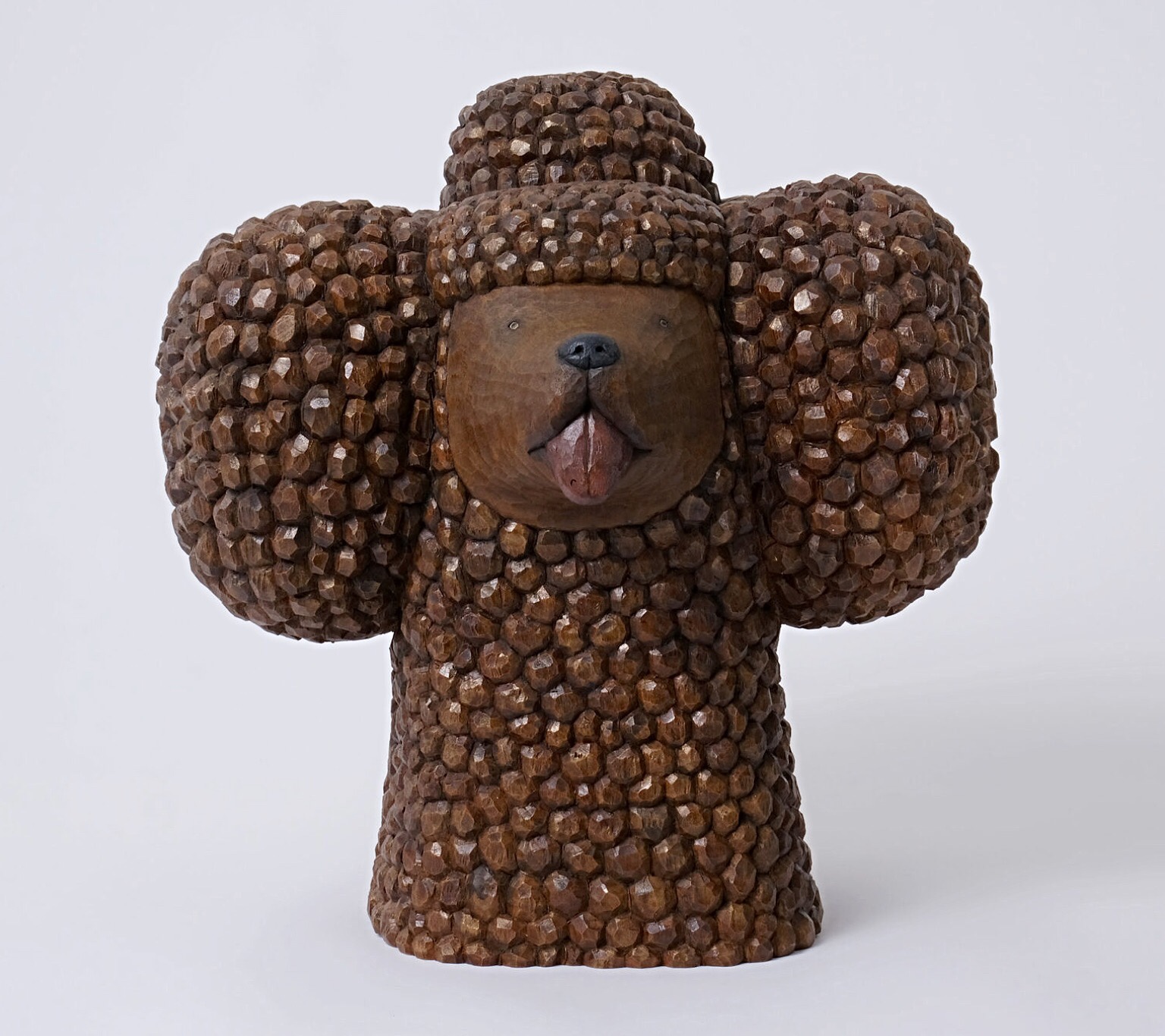 HuMom has been told more than once her 1st life must have been as a dog; she took that as a compliment. Today’s artist is one I have shared before, Wood Carver Misato Sano is said to carved a pack of doggy doubles. Misato creates wagnificent textured wooden sculptures of curly-haired poodles & wooftastic acrobatic pugs ingrained with different aspects of her own pawsonality. Entailing multiple breeds, expressions, & physical traits, each work is a pawrific self-pawtrait.