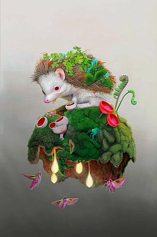 For us good dogs it’s all about the nose & we love the details of a good stink but I notice huMom gets lost in the details of her visual world. Hi, CEO Olivia & today I want to share with you the furbulous & surreal work of self-taught artist Tiffany Bozic. Currently she lives in San Francisco, CA but has spent most of her life living with & observing nature. Although her illustrations can feel traditional there is a emotional range of surreal symbolic /metaphorical themes & this is the stuff I know huMom loves.