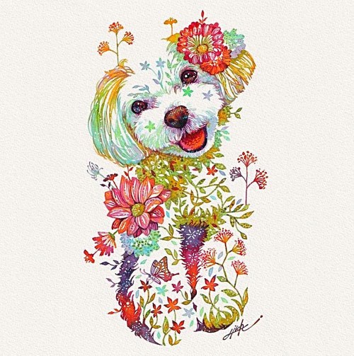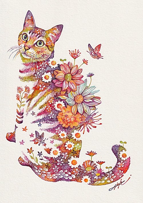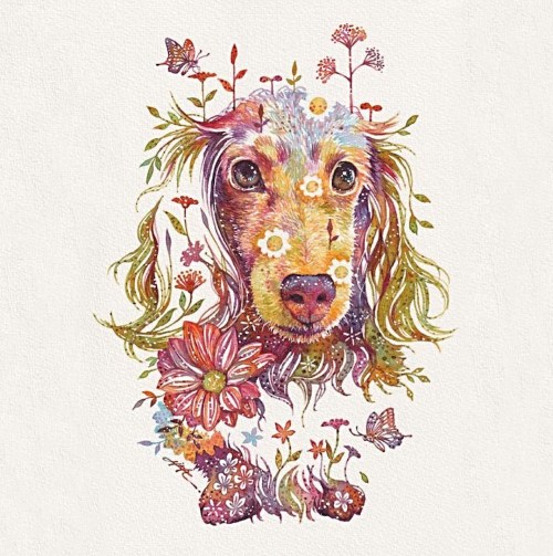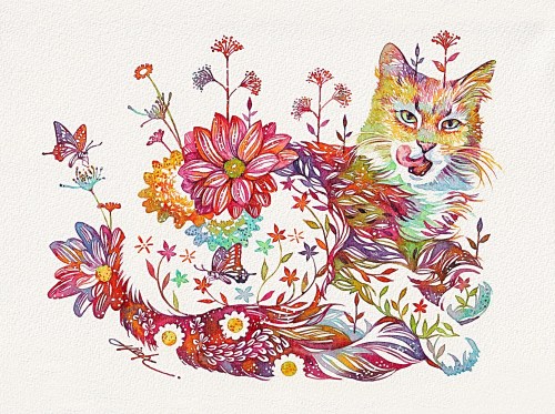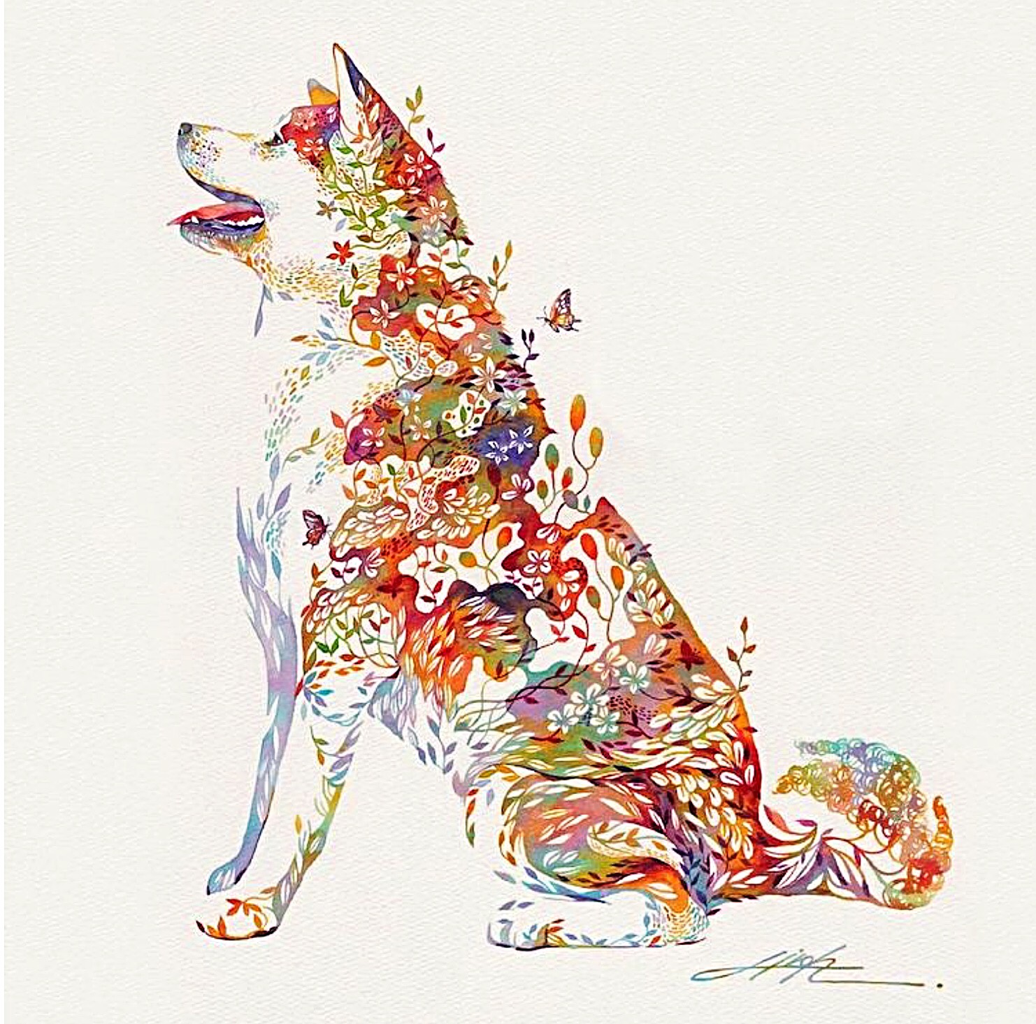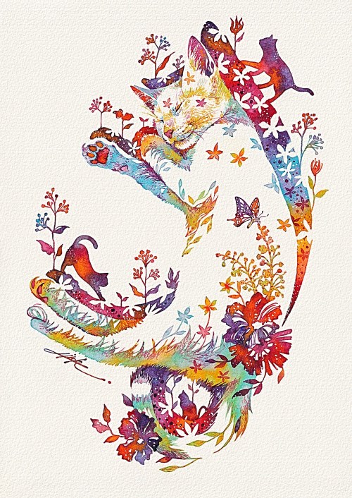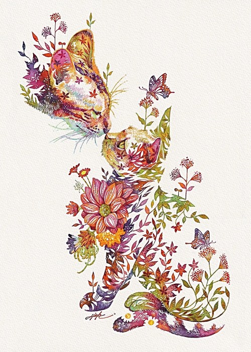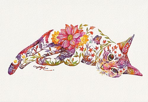 Artist Hiroki Takeda watercolors use vibrant hues to paint unique patterns of flowers & vines that shaped his furbulous creations. Takeda wagnificent works evolved from a combination of influences, including his huMom’s love for plants, his background in caricature, & experimenting with numerous styles. “One day, I had a moment in my mind when I saw a painting of an animal & its fur looked like a plant. The idea of combining watercolor with plants & animals felt very natural to me.” the artist stated.