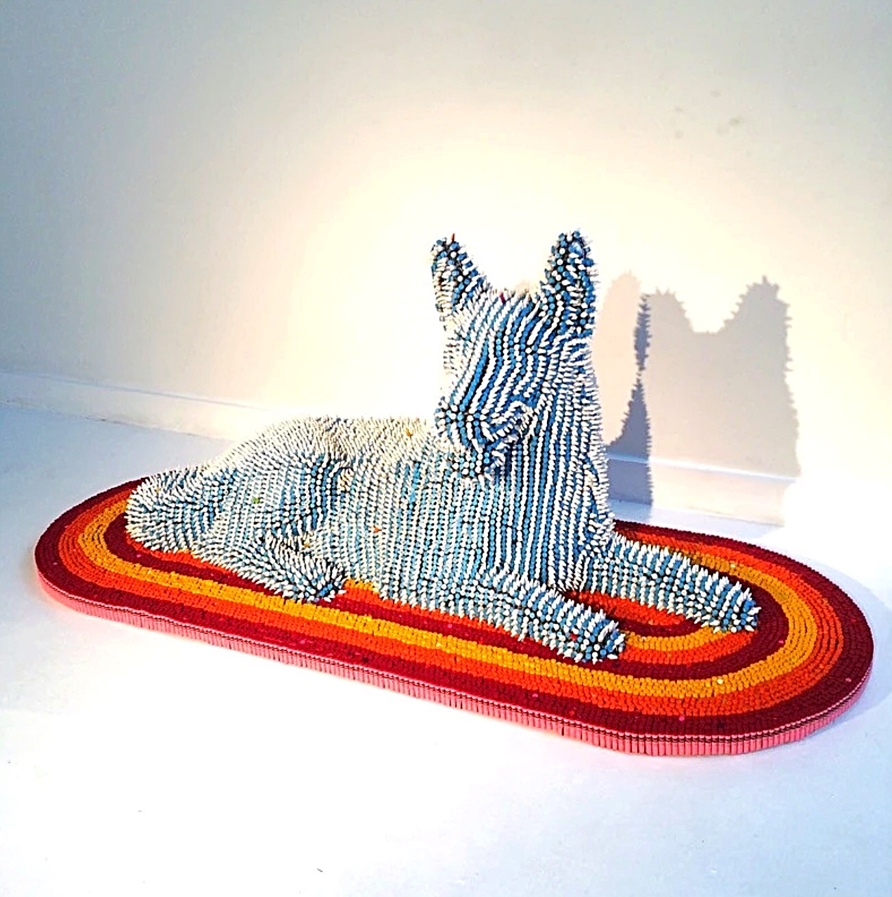 Williams sculptures have been placed in public arenas, such as children’s hospitals, corporate lobbies, museum walls, & the White House. He even holds a world record with Ripley’s & Guinness. These pawtacular dog sculptures are created using a wagnificent amount of individual crayons, 100s of 1000s I read. I dug up that Williams is the only artist to have an account with Crayola.