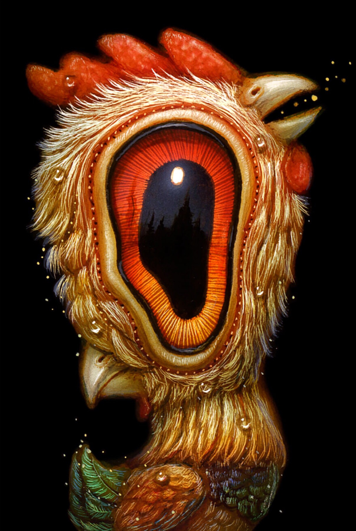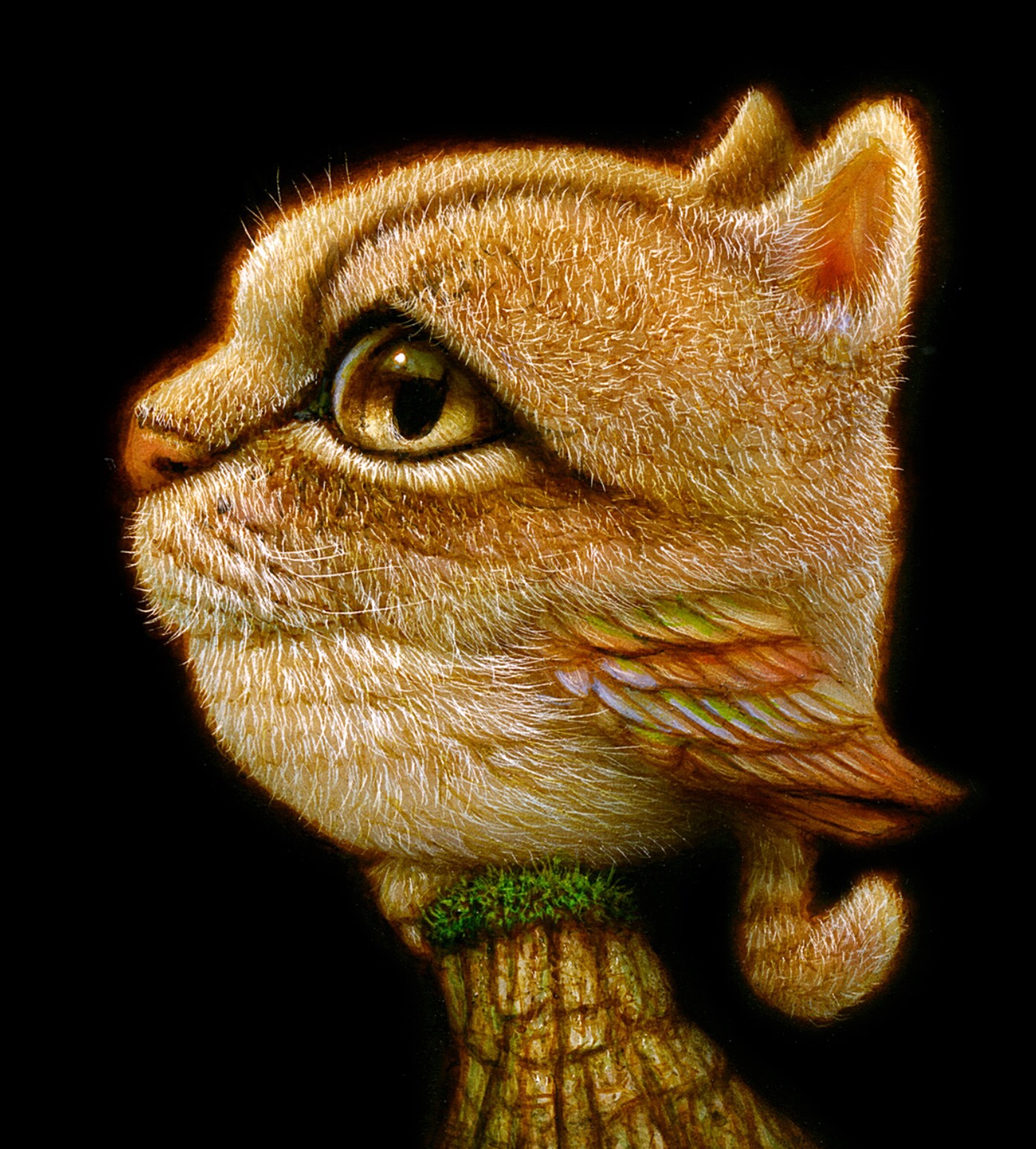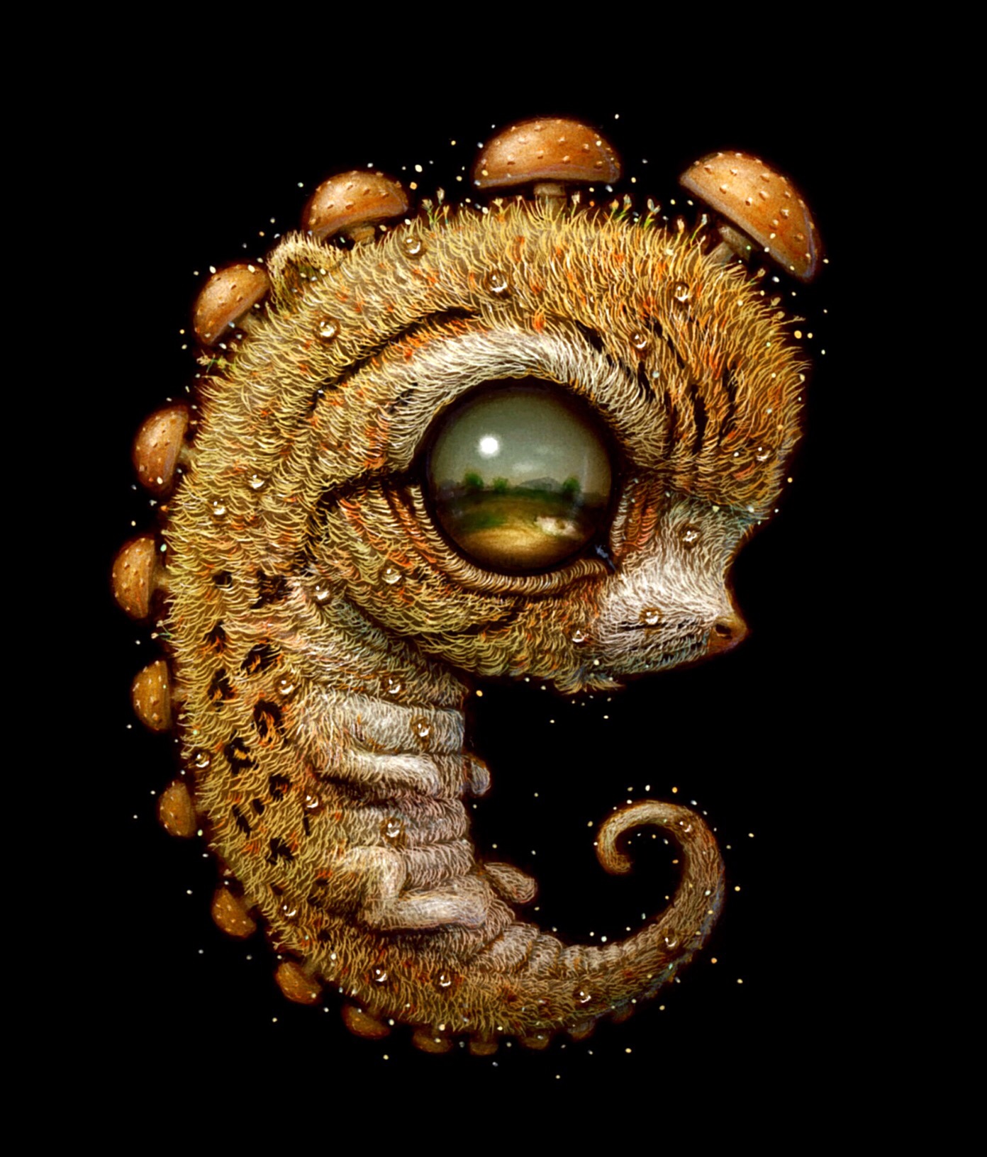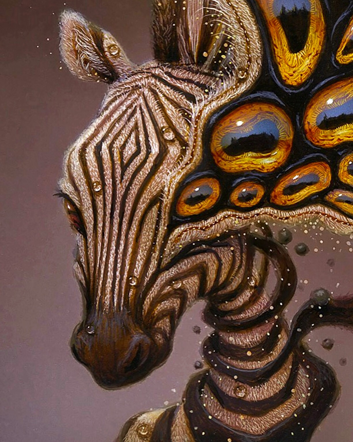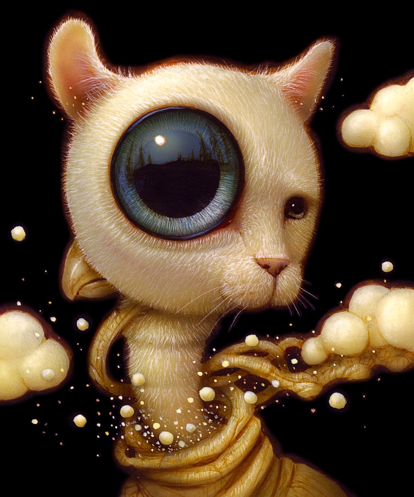 Naoto Hattori’s creations are wooftastically surreal & equally as distrubing as they are wagnificently beautiful. His minuscule work is dog gone pawtacular in detail; one would think they were digitally created but not so. His medium is acrylic & his pieces are always no more than six inches in size.