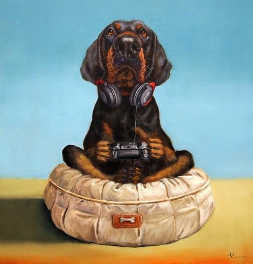 With all the snow & cold weather chores lately Dot, Jerry Underfoot & I thought huMom needed to smile or pawsibley have a good giggle. We think today’s artist work will pawsitively pawvide just that. Hi, CEO Olivia here to yap about graphic artist & oil painter Lucia Heffernan & her pawtastic animals.