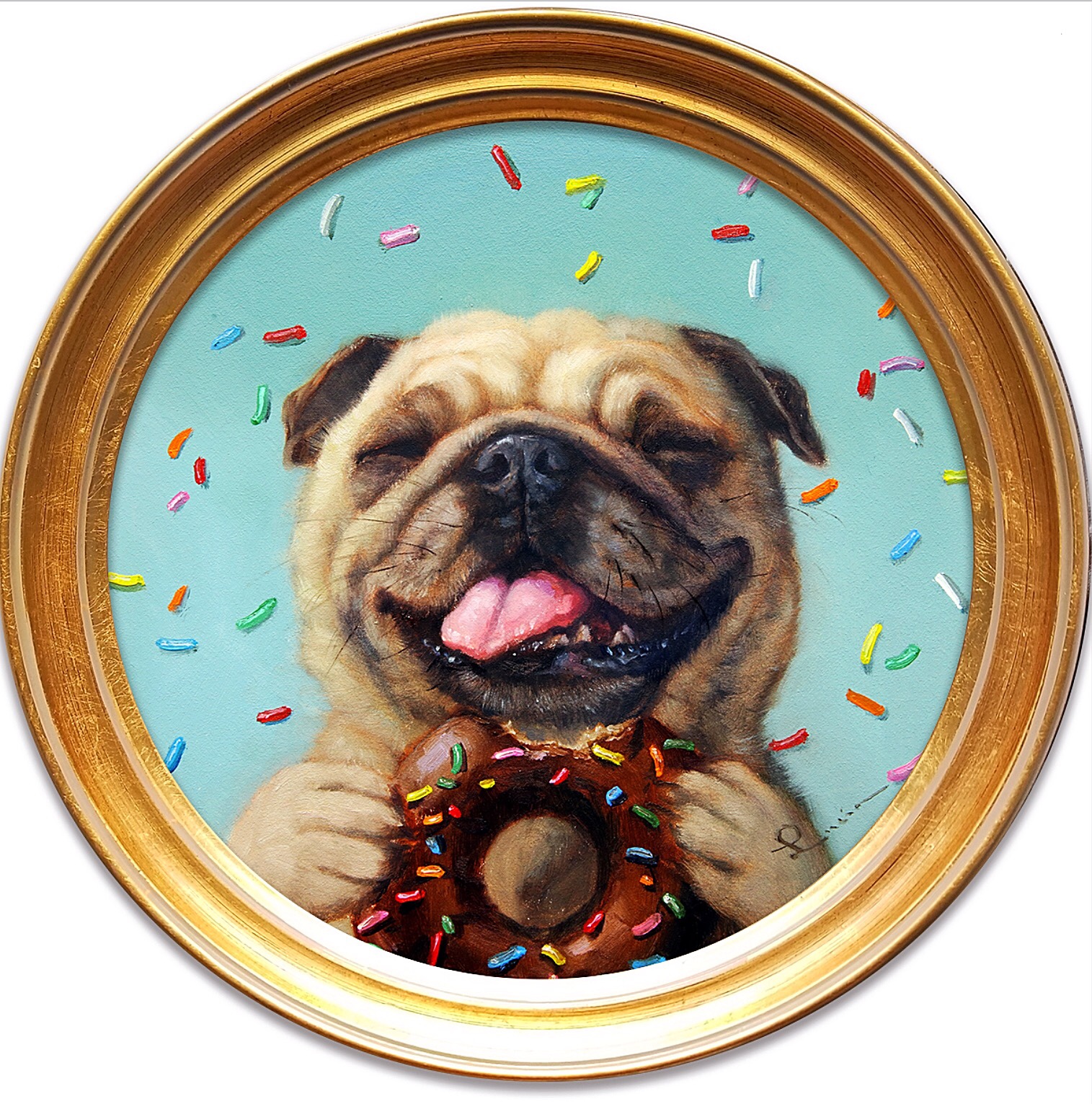 With all the snow & cold weather chores lately Dot, Jerry Underfoot & I thought huMom needed to smile or pawsibley have a good giggle. We think today’s artist work will pawsitively pawvide just that. Hi, CEO Olivia here to yap about graphic artist & oil painter Lucia Heffernan & her pawtastic animals.