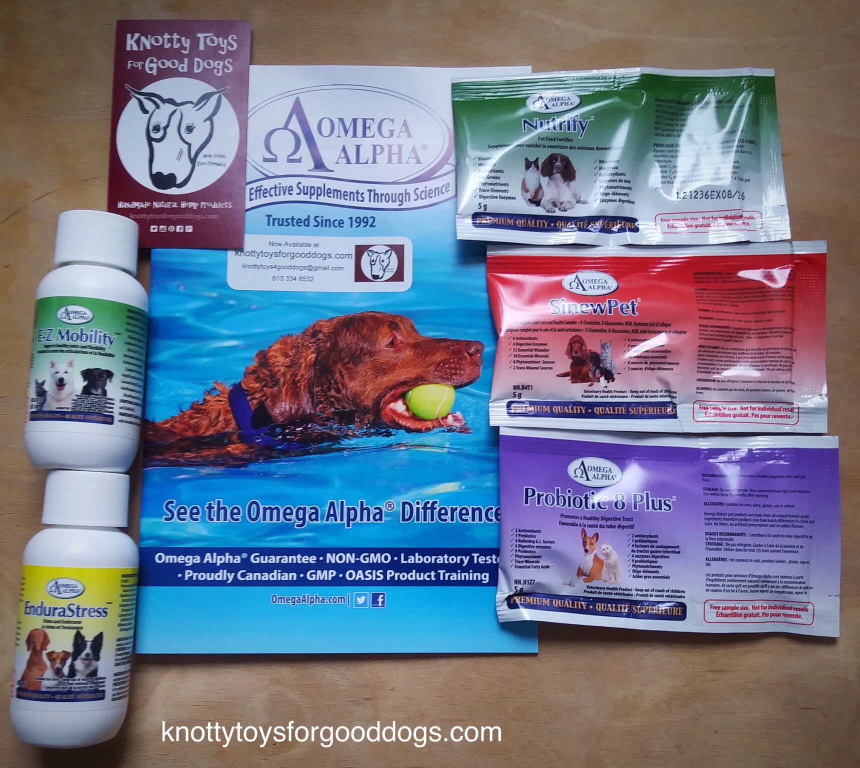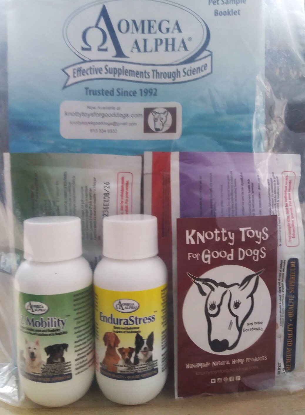 This is a pawsome introduction to Omega Alpha’s pawfectly natural herbal supplements. Omega Alpha has been creating formulations based on Traditional Chinese Medicine & Western herbal medicine since 1992. They make remedies for problems with joints, mobility, kidney, liver, anxiety, energy, lungs, coat, & digestion. They also have pawsome vitamin & mineral supplements. Paw on over to knottytoysforgooddogs.com & sniff around. Make a pawchase for your good dog &/ cat & we will send you one of these furbulous Omega Alpha Goodie Bags.