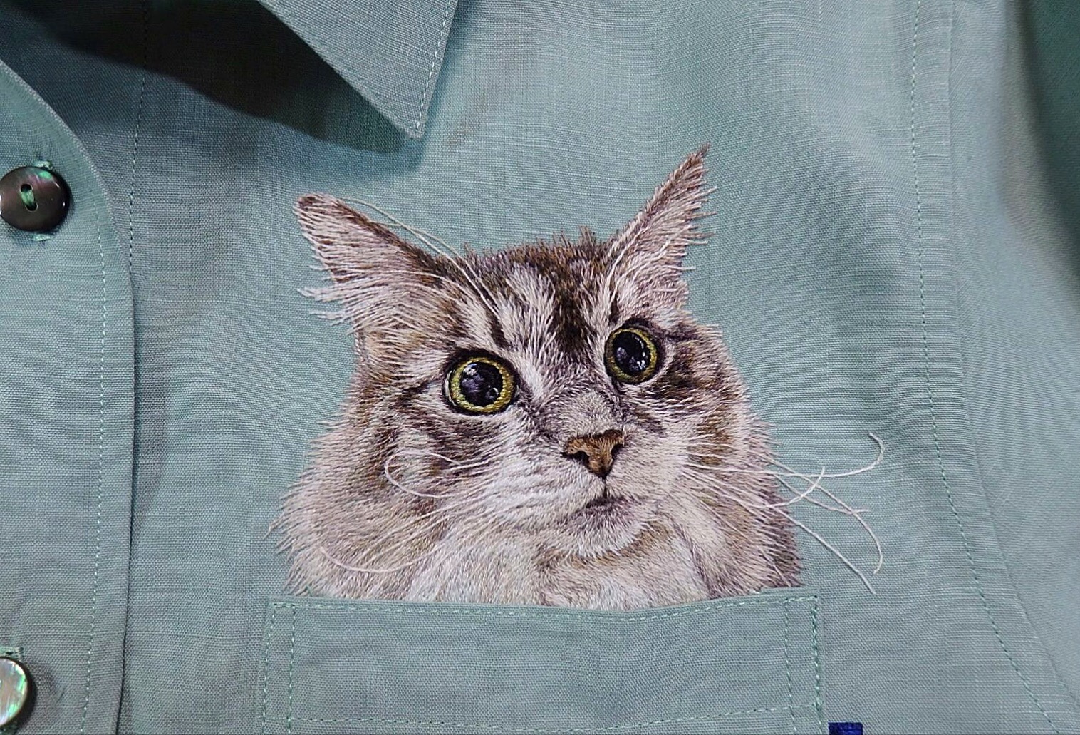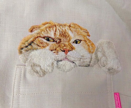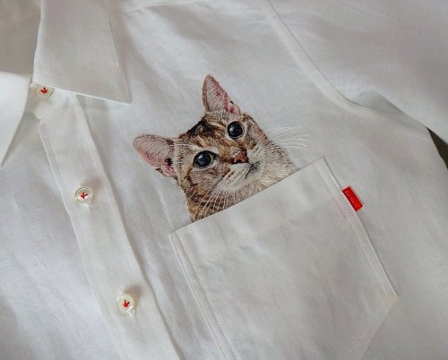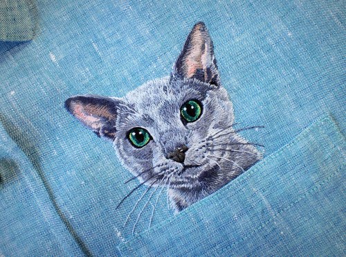Hiroko Kubota’s inspawration came from her son’s love of the feline. Sew, with needle & thread she created these pawtastic shirts. Although you will see she does needlepoint other animals such as lizards, fishes & dogs, it’s pawfectly clear she pawfers to embroider the kitty cat. I will stop yapping sew you can have a look.