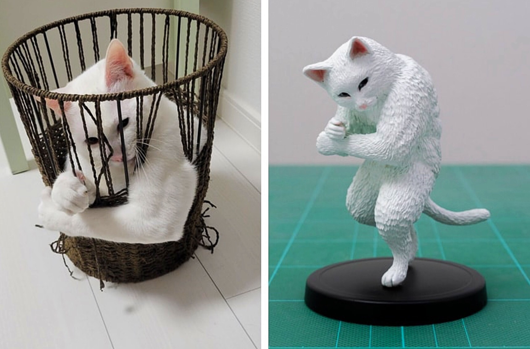 Hi, CEO Olivia here with Dot & Jerry Underfoot tossing you these meowsome links to see more of Japanese artist Meetissai purrfectly pawtastic work. What is purrfectly meowstic is she takes hairlarious photos & creates them into tiny sculptures using epoxy pawtty. Paw her her on twitter. Want to see some of her other furbulous critters? You can by pawing her on Instagram or you can dig up more of her pieces on 121CLICKS.