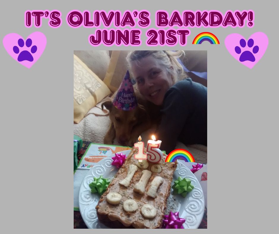 Meow Now, Jerry Underfoot & Dot here today to remind you that CEO Olivia would be celebrating her 15th Barkday (birthday) this coming Saturday June 21st. We thought it would be purrfect to reflect back on Olivia’s life; especially for anyone who is not familar with it.