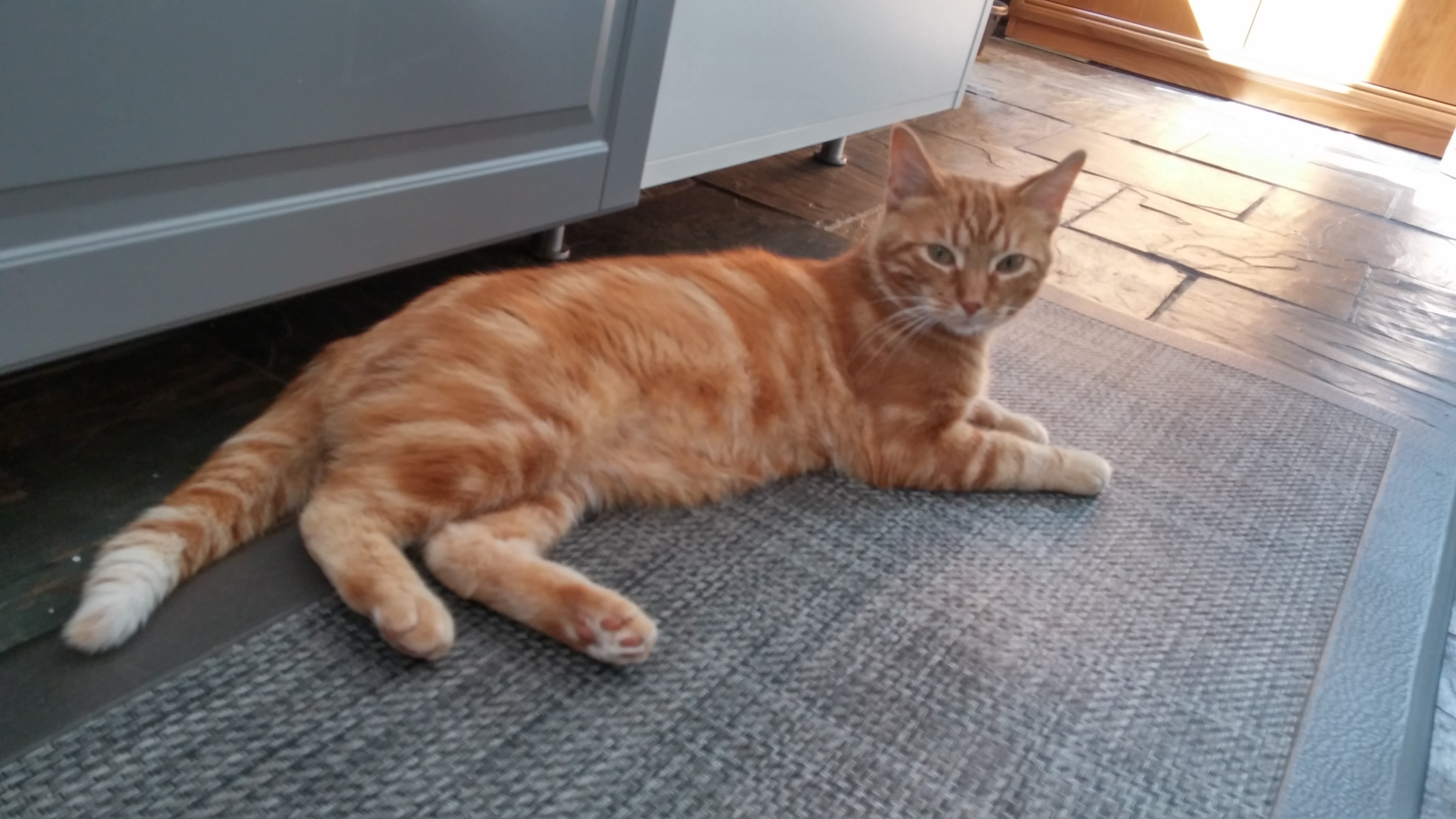 Jerry has been here just over a week & is starting to feel at home. The first few nights he cried a lot because he was afraid. He stayed hidden behind furniture but slowly he’s come around. I can understand how being in a new place with strange animals & smells can be overwhelming. It takes time to get to know a new place & new furriends.
