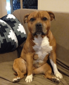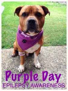 Ruger, a purebred English Staffordshire Terrier from Australia born March 28 2010 began his battle with epilepsy in August 2013. He & his family, Melissa & Jason Brock created a Facebook page with 11,000 likes to raise canine epilepsy awareness & to show that it is a manageable condition. Ruger lived his life to the fullest & brought no end of joy & happiness to everyone who met him.