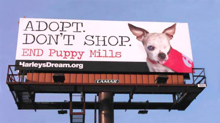 Two new billboards promoting Harley’s Dream just went up in Denver, Colorado, thanks to the sponsorship of a local supporter! They are currently working on establishing billboards in the following cities: Orlando, Philadelphia, New York, Chicago, San Diego, Washington DC, Los Angeles, Tampa, Kansas City & Houston. These cities have a particularly high concentration of pet stores that sell puppies. The billboards have the potential to educate MILLIONS of people about the cruel commercial dog breeding industry!