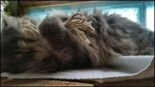 Dottie has reported that she enjoys playing with her Knotty Bon Bons & her predatory needs are satisfied. As a bonus, the Knotty Bon Bons clean her teeth as she plays. My huMom likes this because trying to brush Dottie’s teeth is a challenge but clean teeth is very important.