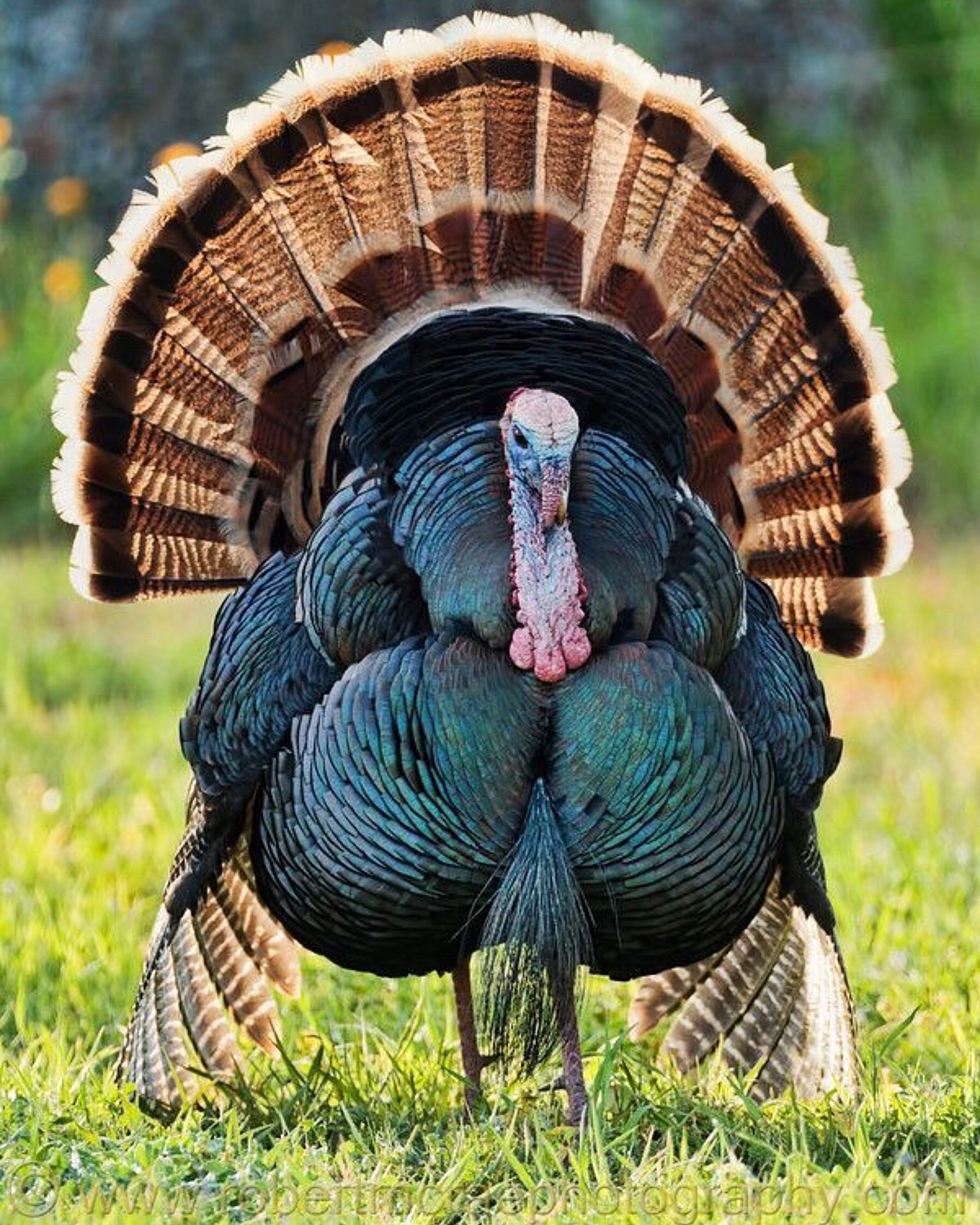 Turkeys have up to 6,000 feathers in beautiful, iridescent shades of varying colors such as red, bronze, gold, & green.